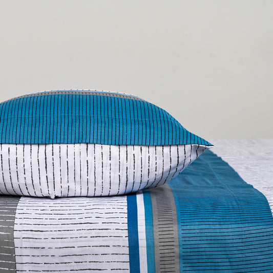 Sabana Blanca 144 Hilos Algodón Cama 2 Plazas Estampado Bluestone Cannon Hogar