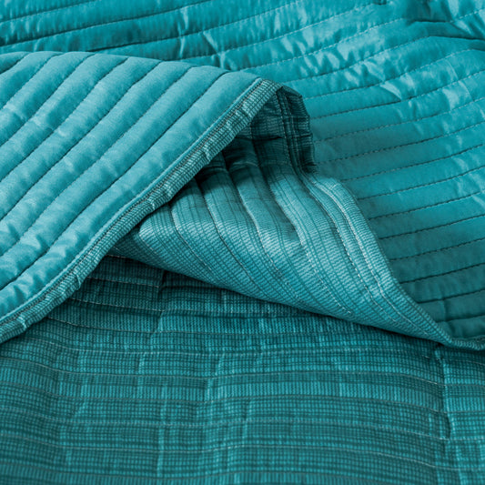 Cubrecama De Verano Quilt King + 2 Fundas Bicolor Azul Celeste Cannon